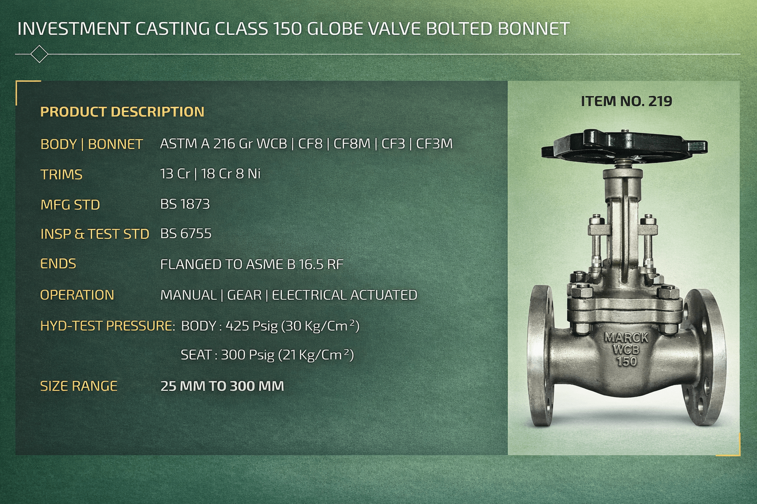 A good cast steel globe valve supplier should be able to offer services such as timely delivery, technical support, and global logistics services. The suppliers usually hold ready stock of the following: