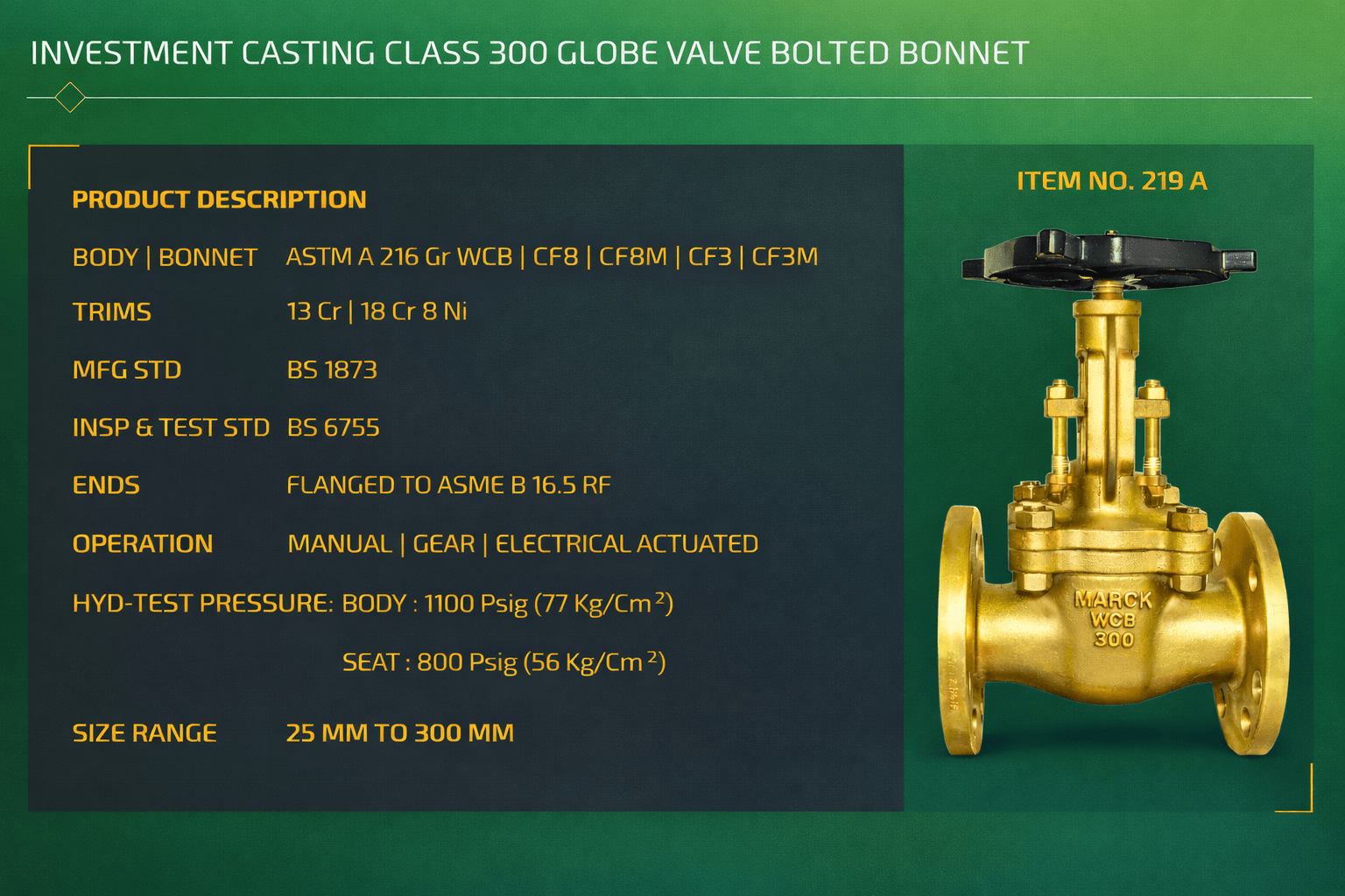 A cast steel globe valve is made from cast steel materials like WCB, WC6, WC9, LCB, or stainless steel. The design enables accurate flow regulation by means of a movable disc and a fixed ring seat.